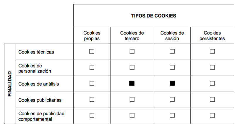 Una Cookie es un fichero que se descarga en su ordenador al acceder a determinadas páginas web. Las cookies permiten a una página web, entre otras cosas, almacenar y recuperar información sobre los hábitos de navegación de un usuario o de su equipo y, dependiendo de la información que contenga y de la forma en que utilice su equipo, pueden utilizarse para reconocer al usuario. Las cookies son esenciales para el funcionamiento de internet, aportando innumerables ventajas en la prestación de servicios interactivos, facilitándole la navegación y usabilidad de nuestra web. La información que le proporcionamos a continuación, le ayudará a comprender los diferentes tipos de cookies: